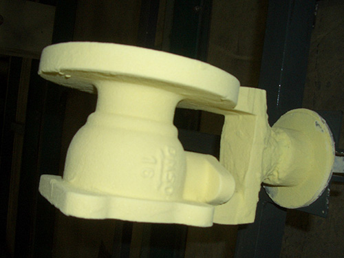該類鑄件在制殼和脫蠟過程中容易形成面層裂殼、臌脹等缺陷,解決方案:   1、面層: 使用加強型硅溶膠配合特殊粒度的200目鋯粉和80-120目無粉塵較粗鋯砂制作面層。   加強型硅溶膠有效地提高了面層型殼的濕強度,減少了面層干燥對環(huán)境溫濕度和干燥時間的敏感性。200目特殊粒度鋯粉,由于少量粗粒的存在,明顯的提高了面層漿料的強度。80-120目無粉塵粗砂的使用,使鋯砂能更好的嵌入面漿涂層中,對面漿涂層起到較好的加固作用,也明顯地提高了面層強度。   2、背層:加強型硅溶膠配合200目莫來粉與無粉塵的30-60目莫來砂做二層,16-30目做其它背層。   加強型硅溶膠有效地提高了型殼的濕強度,無粉塵莫來砂使涂層間結(jié)合良好,提高了型殼強度的同時,又提高了型殼的透氣性,有效減少了脫蠟時裂紋的產(chǎn)生。   3、鑄件:裂殼、臌脹減少90%。